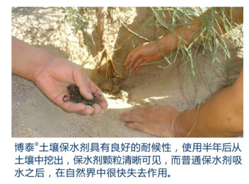 與傳統(tǒng)土壤保水劑相比,博泰“土壤保水劑在吸水放水的基礎(chǔ)功能上還科學(xué)聚合了殼寡糖、海藻酸、氨基酸等天然生物刺激素,具有土壤友好植物營養(yǎng)、智能緩釋等多種優(yōu)勢,全方位解決普通保水劑在土壤中降解性保水量、耐光照化以及反復(fù)吸放水性能等方面的弊端,是全新一代高科技產(chǎn)品,產(chǎn)品性能優(yōu)越。