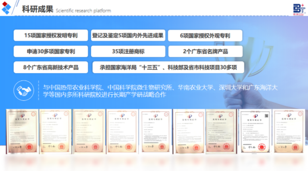 從 1999 年到 2025 年,20 余年堅(jiān)守,王榮輝當(dāng)初 “兩年出成果” 的預(yù)期雖未實(shí)現(xiàn),但這份 “興趣與理想兼具” 的堅(jiān)持,卻換來了沉甸甸的回報(bào):17 項(xiàng)國家發(fā)明專利、30 多項(xiàng)科研項(xiàng)目、有機(jī)認(rèn)證與廣東省名牌產(chǎn)品等諸多榮譽(yù),產(chǎn)品推廣面積超 1000 萬畝,成為海洋生物資源綜合利用的領(lǐng)航者。