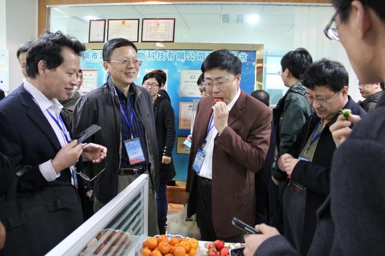 中國科學(xué)院院部咨詢項(xiàng)目組成員近十位院士及三十多位研究員就“海洋生物質(zhì)資源開發(fā)與利用中存在的問題和對策”到國家生物產(chǎn)業(yè)基地大鵬海洋生物產(chǎn)業(yè)園調(diào)研,并蒞臨到深博泰公司進(jìn)行調(diào)研和指導(dǎo),現(xiàn)場各位院士專家品嘗了由深博泰自主研發(fā)的蝦肽肥種植出來的有機(jī)草莓和砂糖橘都贊不絕口,特別是對我公司綜合利用蝦加工下腳料開發(fā)系列高新技術(shù)產(chǎn)品,實(shí)現(xiàn)“0”污染排放的組合技術(shù)體系及建立年處理5萬噸蝦加工下腳料的清潔生產(chǎn)示范工程給予高度評價(jià)。